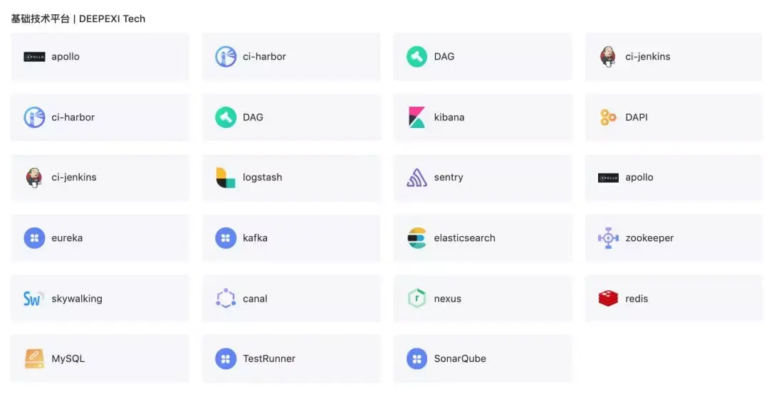 DEEPEXI Tech 基础设施:分为公司共享级、 项目共享级和项目环境级基础设施,整合开源中间件,为企业提供开箱即用的互联网分布式技术,应对大型分布式系统下高并发、高可用、高性能的业务场景,帮助业务产品聚焦业务价值点,无须关注技术实现方案。