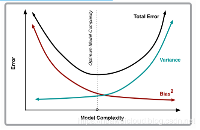 模型复杂度和偏差、方差的关系如下图,随着模型复杂度增大,偏差减小,方差变大,预测错误率在模型复杂度到达一定程度后,反而会增大,偏差和方差从某种程度上说是一对矛盾体,很难做到偏差和方差都很低,只能从偏差、方差和模型复杂度中找到一个平衡点。