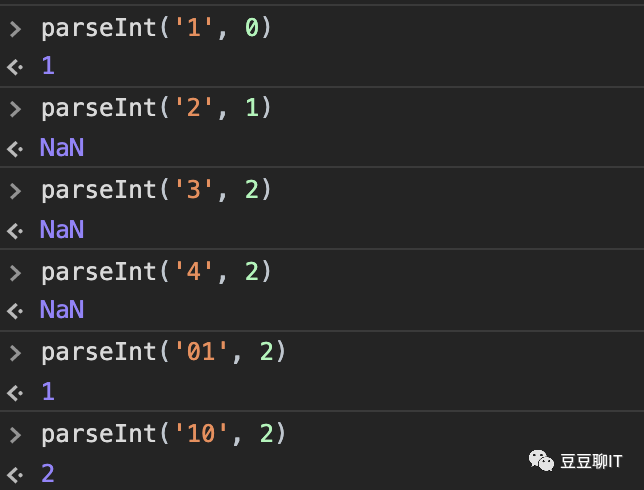 也就是说,后面这个参数是进制的意思;所以,我们来看一下下面这组计算: