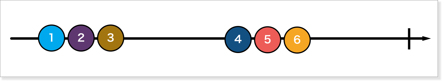 横向表示时间线,每个球表示发生事件的时间点,球与球之间间隔表示时间间隔。