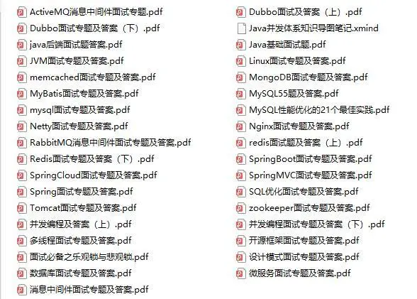 以上就是分享的进阶架构师学习线路,分享了一波进阶线路图谱,那么资源肯定也是少不了的,如果你对技术提升很感兴趣,小编在这里提供了一份针对上面导图的架构进阶资料,资源分享包括但不限于(分布式架构、高可扩展、高性能、高并 发、Jvm性能调优、Spring,MyBatis,Nginx源码分析,Redis、Netty、Kafka、Mysql 、Zookeeper、Tomcat、Docker、Dubbo、Nginx)。