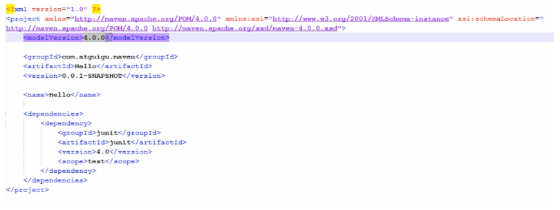 - Hello依赖的JUnit版本:4.0