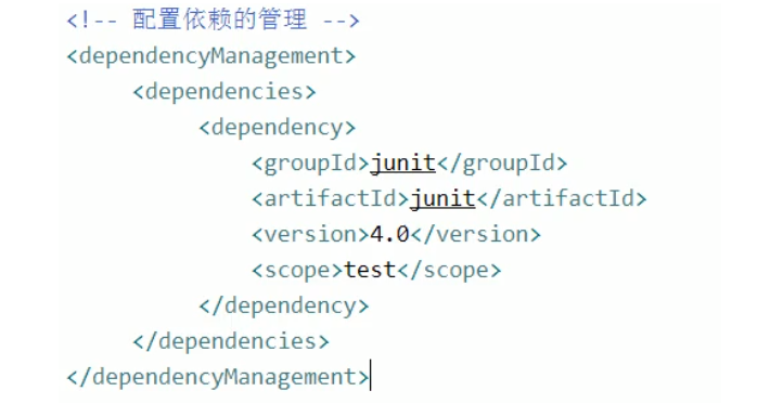 【3】解决思路:将Junit依赖版本统一提取到“父”工程中,在子工程中声明依赖时不指定版本,以父工程中统一设定的为准。同时也便于修改