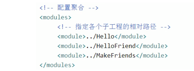 配置方式:在一个“总的聚合工程”中,配置各个参与聚合的模块