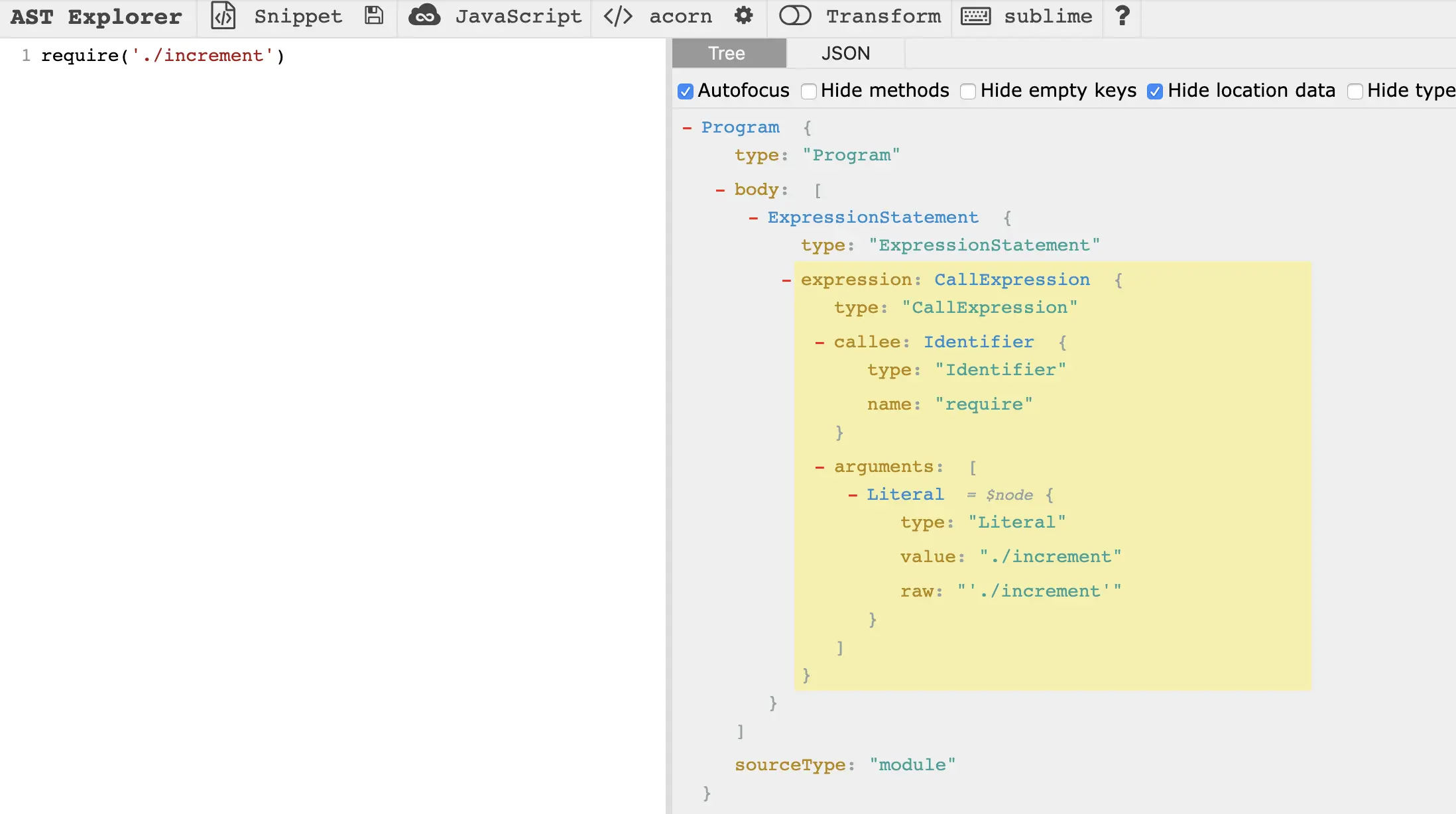 // "arguments": [ { "type": "Literal", "value": "./increment", "raw": "'./increment'" } ]