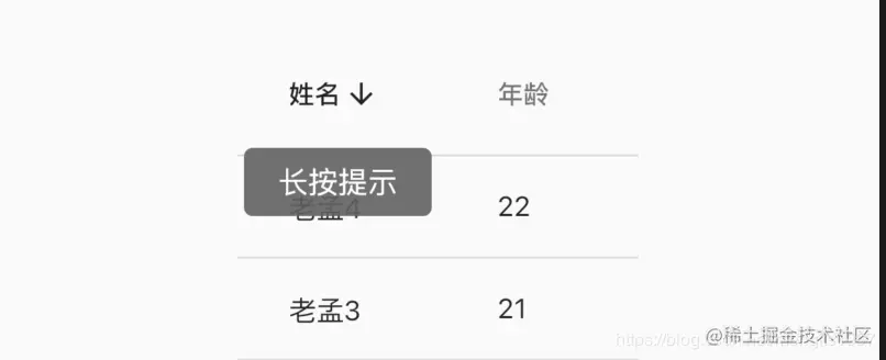 DataColumn(label: Text('姓名'),tooltip: '长按提示')
