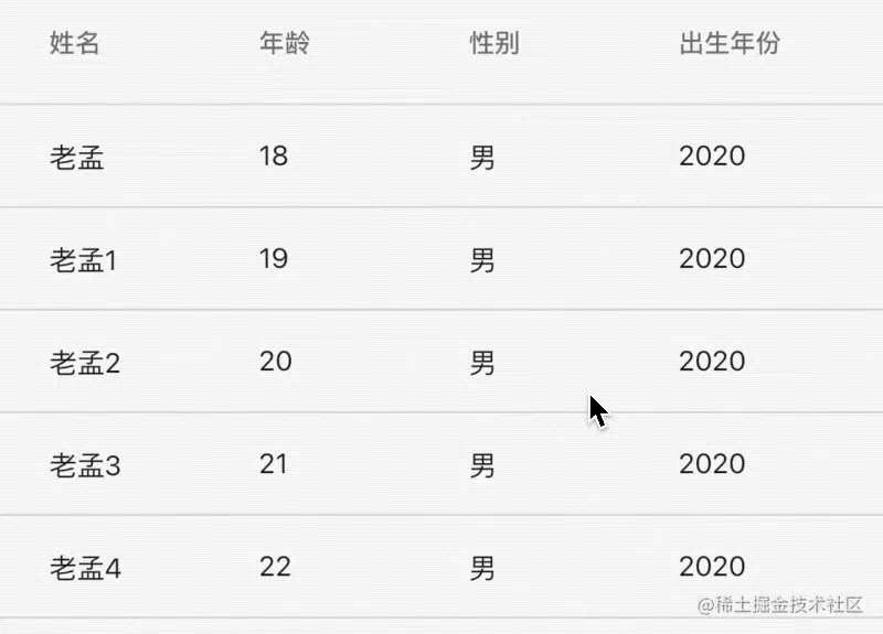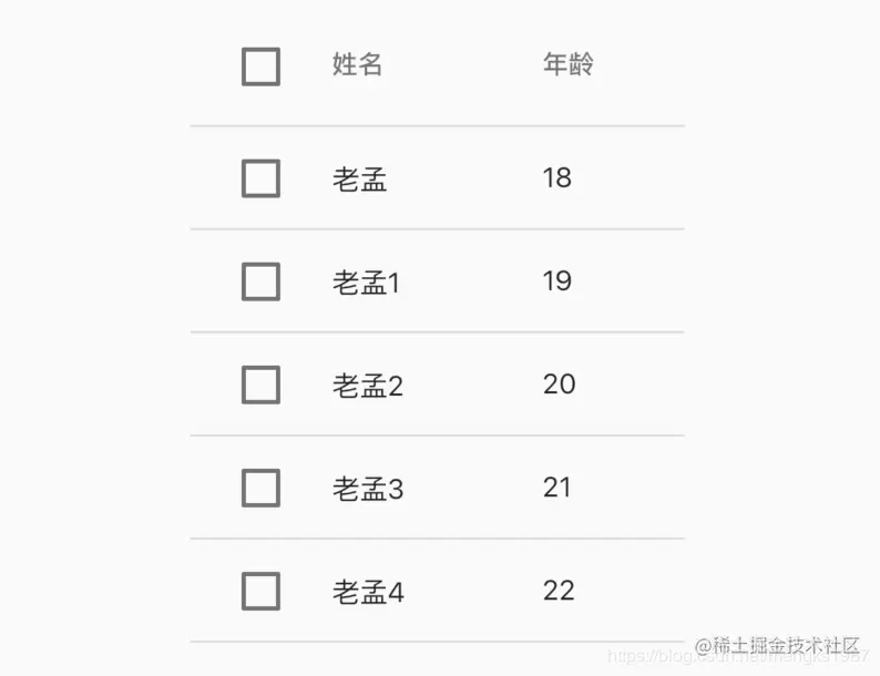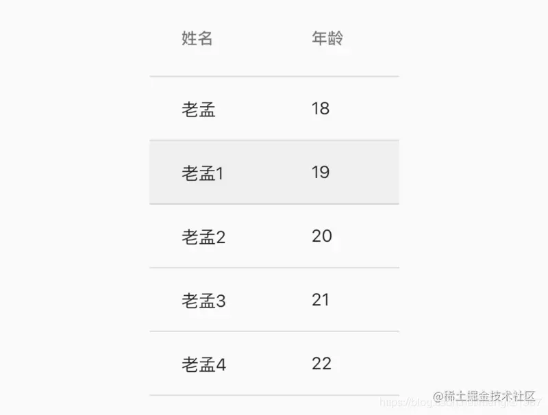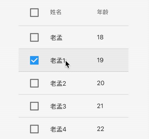 当然现在点击还不能显示选中的效果,增加选中效果,修改User model类,增加selected属性,表示当前行是否选中: