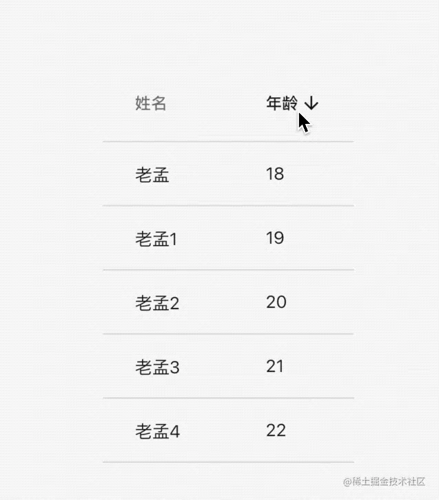 在表头显示排序图标: