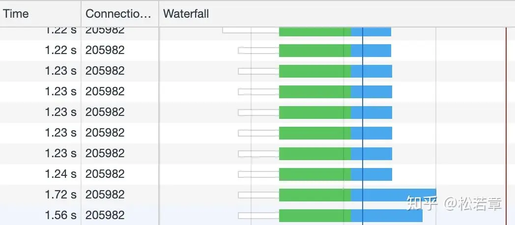 但是,HTTP2 提供了 Multiplexing 多路传输特性,可以在一个 TCP 连接中同时完成多个 HTTP 请求。至于 Multiplexing 具体怎么实现的就是另一个问题了。我们可以看一下使用 HTTP2 的效果。