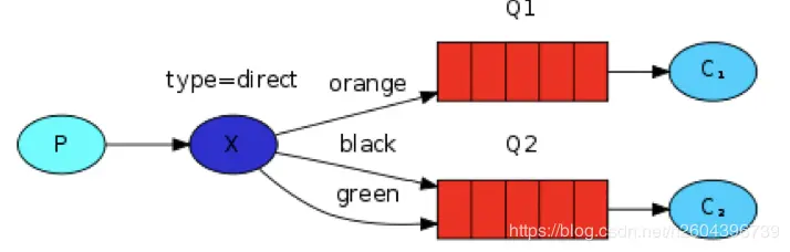 - direct:如果RoutingKey完全匹配,消息就被投递到相应的队列。