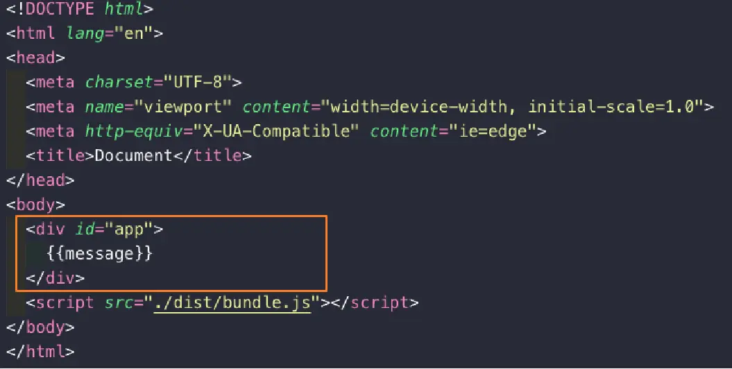 这里,我们可以将div元素中的{{message}}内容删掉,只保留一个基本的id为div的元素
