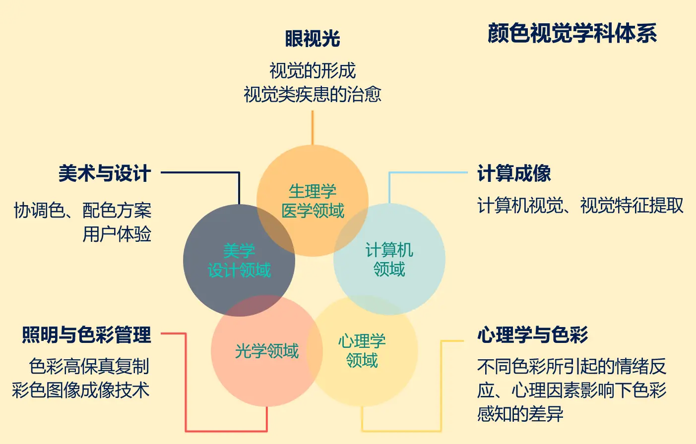人的感官有听觉、触觉、嗅觉、味觉、视觉五大感观,但实际上外部世界超过80%的信息是通过视觉提供的。因此,众多学科都与颜色信息有重要的关联。