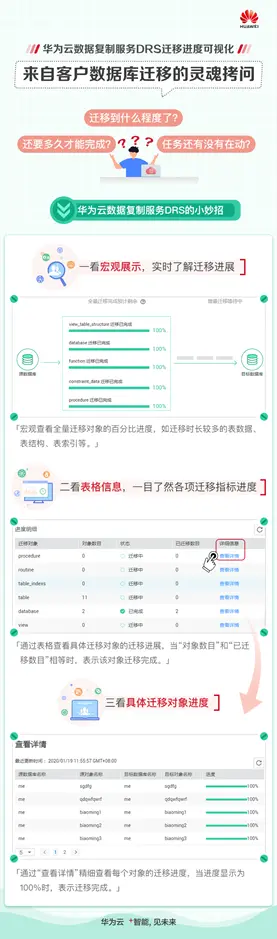 最近DRS新推出了一个非常实用的小功能——迁移进度可视化,让客户清晰可见迁移时全量阶段的进展,一目了然任务的迁移进度,使迁移过程透明化、可视化,有效提升了用户体验。