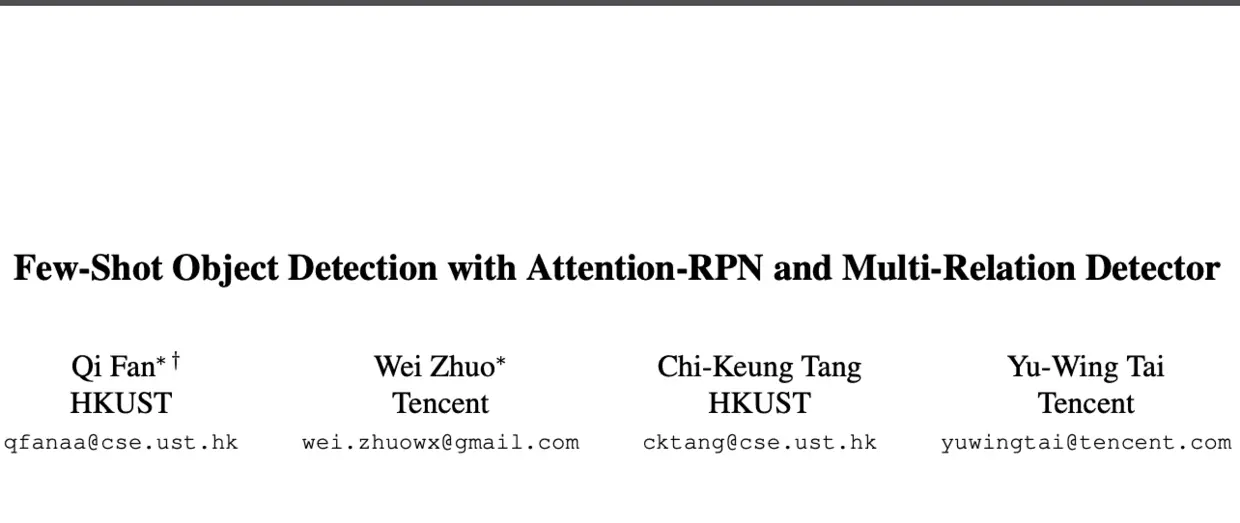 不同于正常的目标检测任务,few-show目标检测任务需要通过几张新目标类别的图片在测试集中找出所有对应的前景。为了处理好这个任务,论文主要有两个贡献: