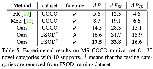 - 提供了一个1000类的少样本训练集FSOD,论文提出的模型的性能提升有一定程度得益于此训练集,是一个前所未有的训练集