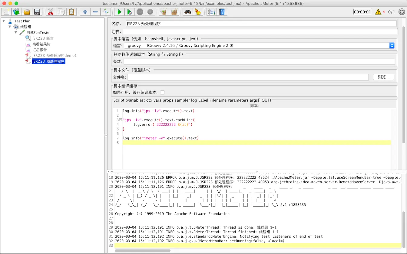 2020-03-04 15:25:57,393 ERROR o.a.j.m.J.JSR223 预处理程序: 222222222 49573 sun.tools.jps.Jps -Dapplication.home=/Library/Java/JavaVirtualMachines/jdk1.8.0_51.jdk/Contents/Home -Xms8m