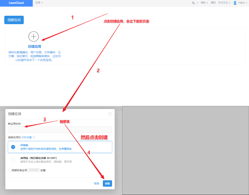 如果注册过LeanCloud,请点击此处进行登录,未注册的请点击注册