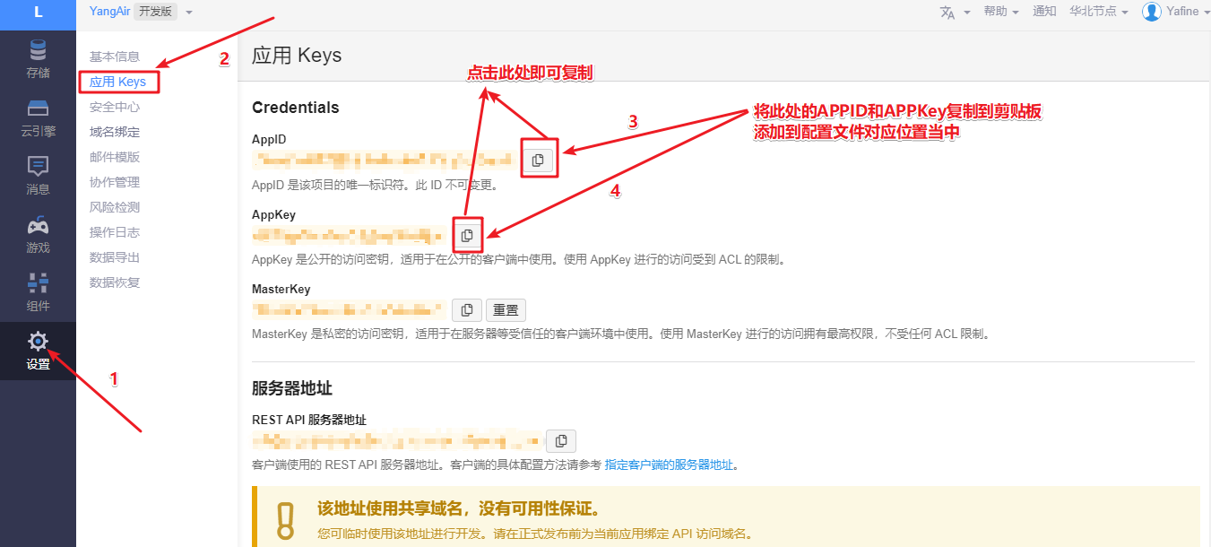 会出现下面的页面,将其中APPID和APPKey复制,添加到配置文件中。