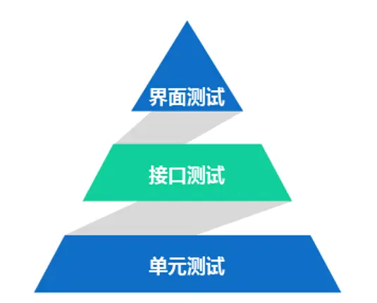 这种下宽上窄的三角形结构,代表在各层自动化的建议投入分配比例,越接近底层的单元测试建议的投入最多,接口测试居中,界面层建议的投入最少。