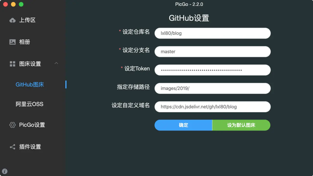 Github图床配置如上图,参数说明: