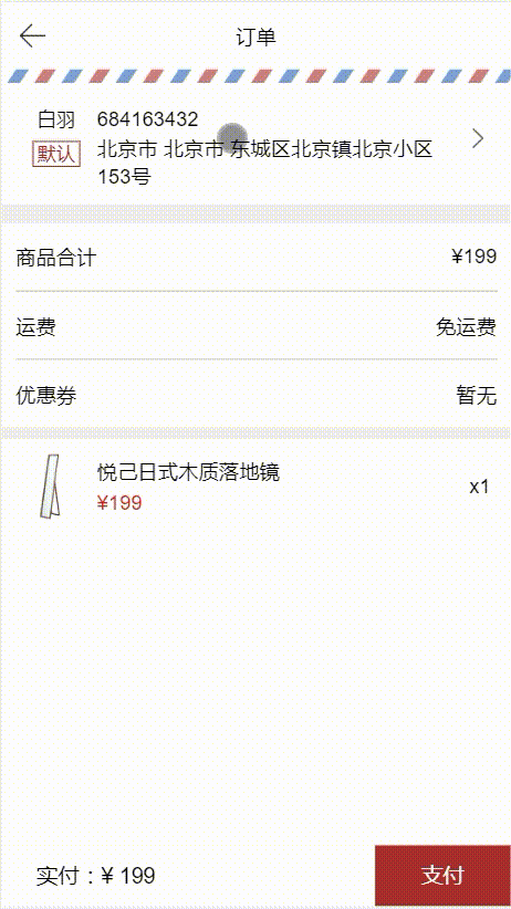 主要是在实现订单数据同步以及收货地址的修改,这里遇到了一个坑,就是上篇文章所提到的vue数据缓存的问题,最终使用