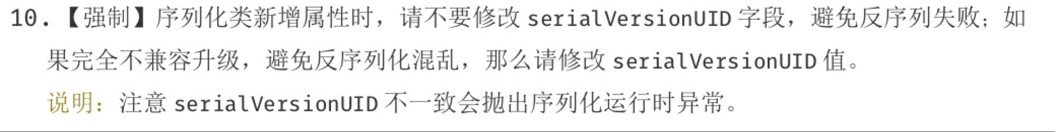 关于serialVersionUID,阿里巴巴开发手册中就有提及