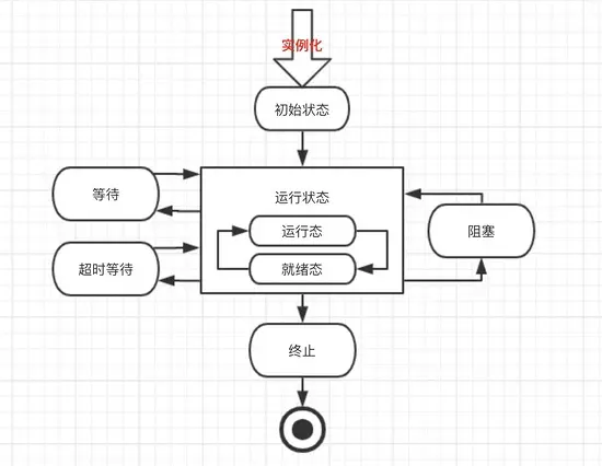 上述流程描述了线程不同状态之间的切换,基本流程图如下。