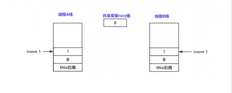 (2)线程A,线程B同时执行iconst_1将int型(1)推送至栈顶