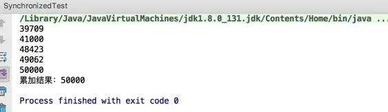 System.out.println("累加结果:"+synchronizedTest.getRace());