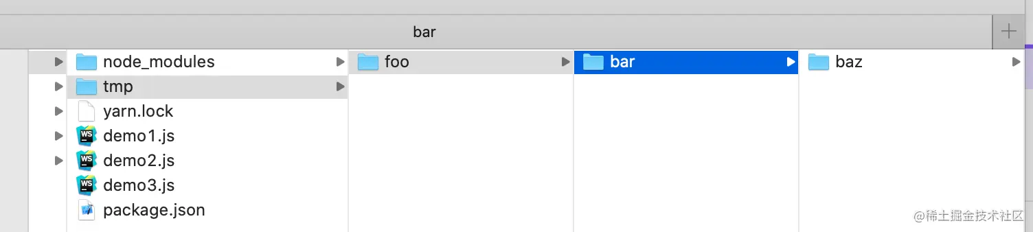 mkdirp('tmp/foo/bar/baz').then(made => console.log(`创建目录于: ${made}`))