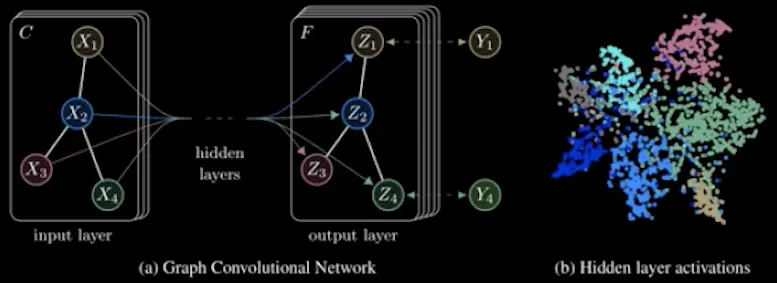 有了这种图卷积网络,我们还可以去做一些任务的训练,效果也不错。比如说在Kipf这篇论文里面,还介绍了一个半监督学习的方式。