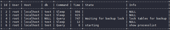 全备是基于xtrabackup,在执行真正的备份之前需要执行lock tables for backup,但从show processlist中只能看到:lock tables for backup时一直被某个MDL锁阻塞,全备超时失败;客户的多个session业务量很小,都处于sleep状态,于是客户继续执行show open tables where in_use >=1: