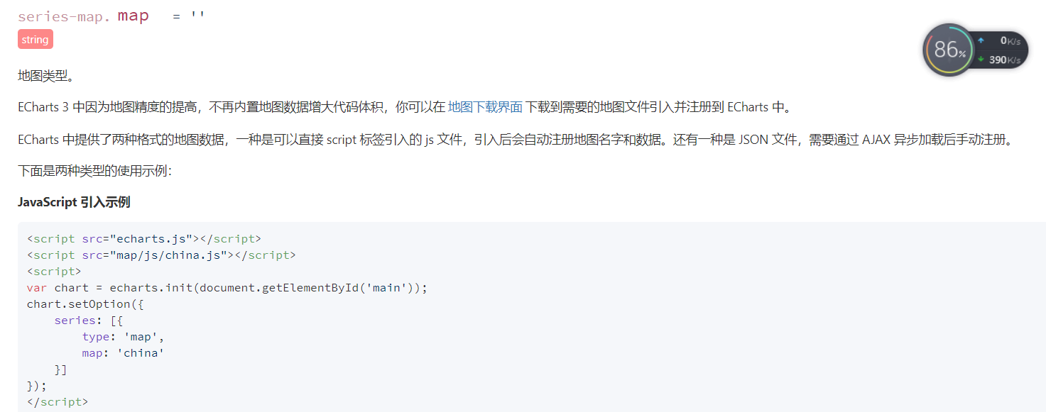 echarts的官网配置项下的series是不同系列的图表,疫情地图需要看map文档