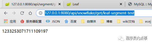 测试一下,访问:http://127.0.0.1:8080/api/snowflake/get/leaf-segment-test