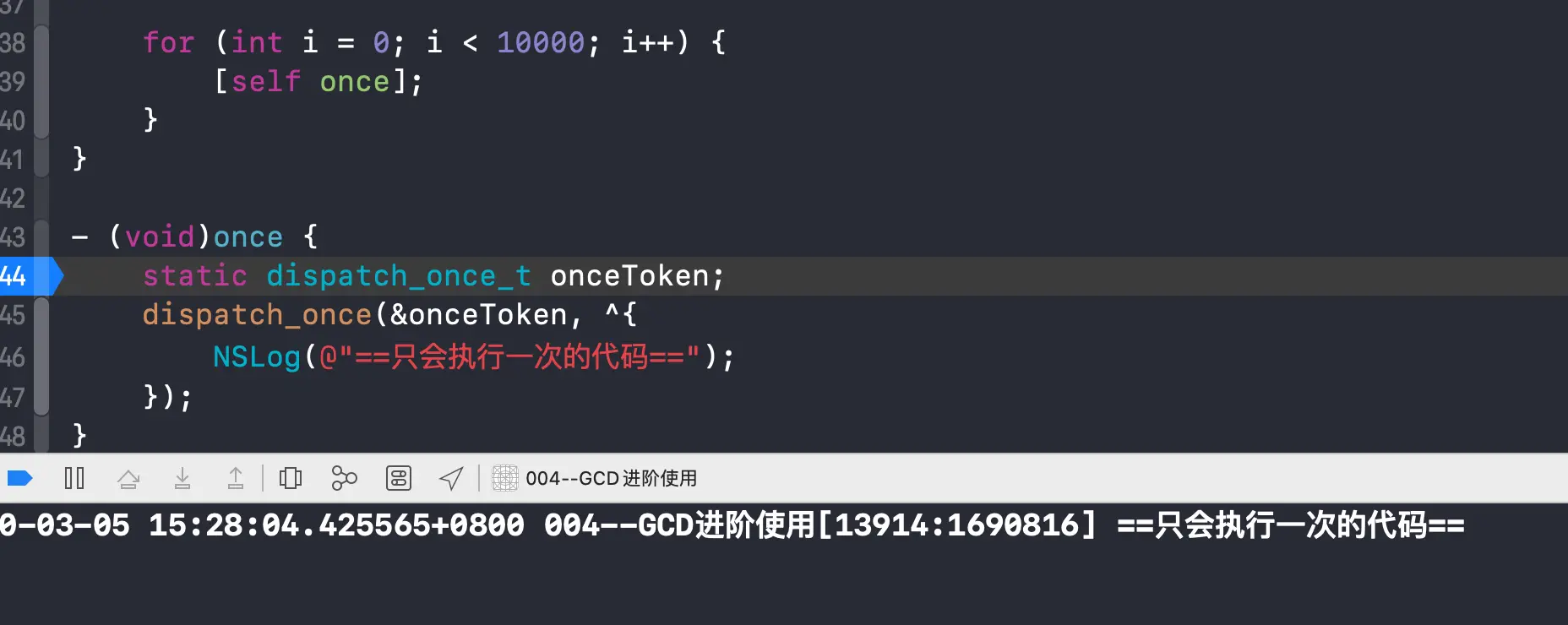 dispatch_once会保证block中的程序只执行一次,并且即使在多线程的环境下,dispatch_once也可以保证线程安全。