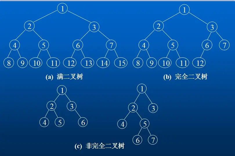 - 一棵深度为k且有2的k次方-1个结点的二叉树称为满二叉树。