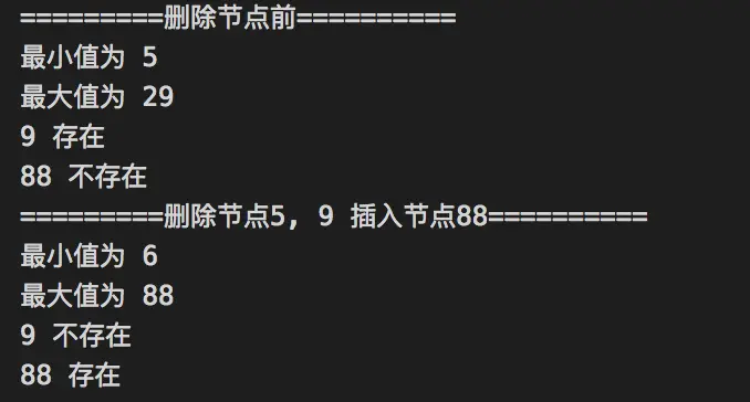 console.log('=========删除节点5, 9 插入节点88==========');