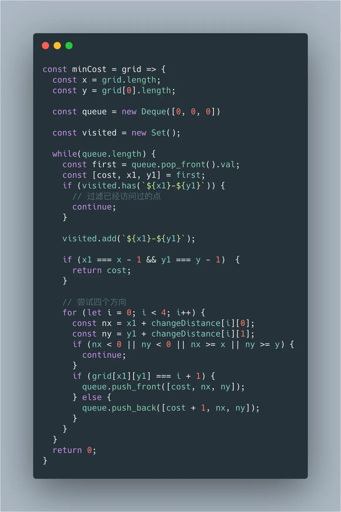 不过官网给出的最优解法是:BFS 和 双端队列(0-1BFS)。