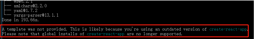 按照官网执行npx create-react-app my-app后提示A template was not provided. This is likely because you're using an outdated version of create-react-app. Please note that global installs of create-react-app are no longer supported.