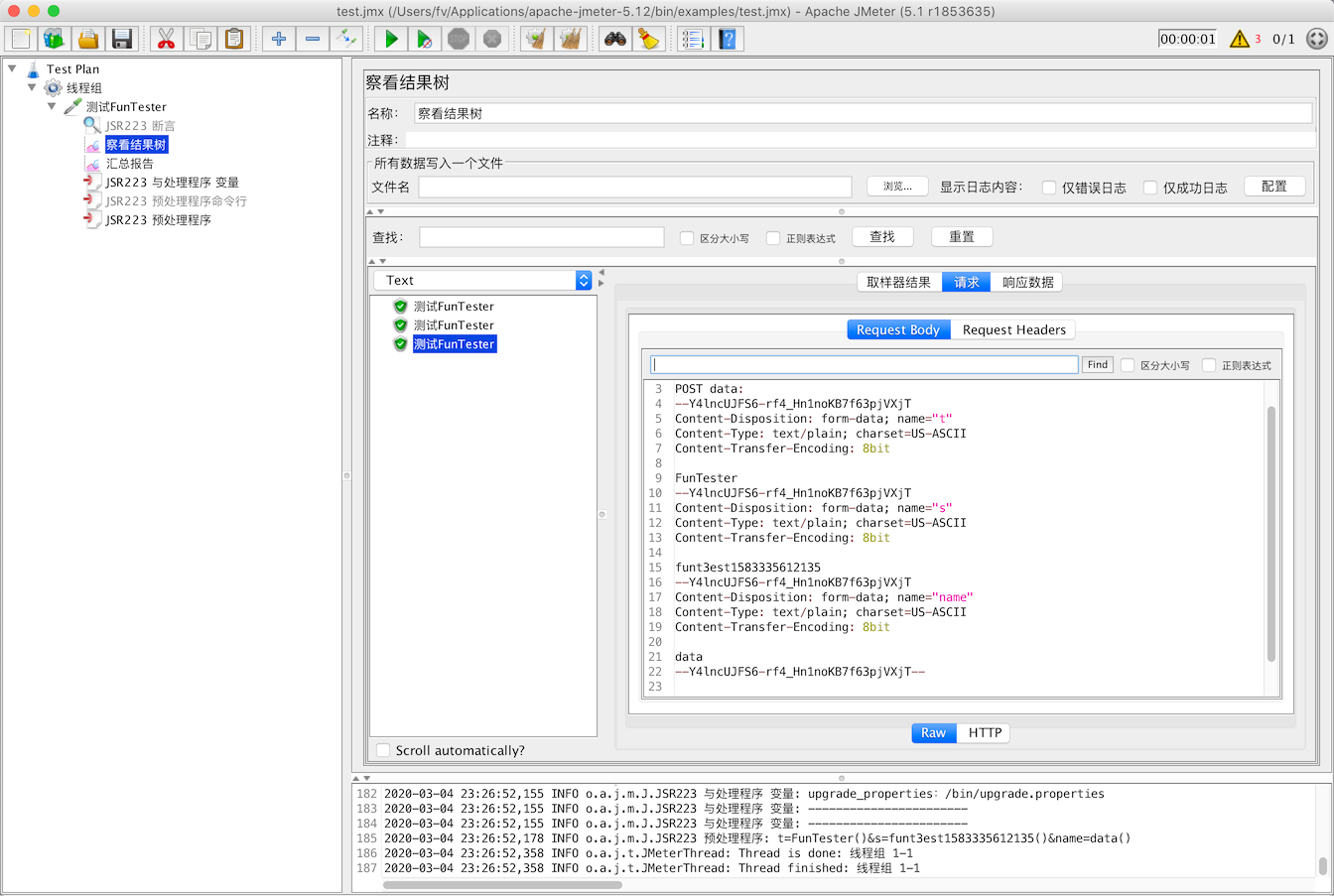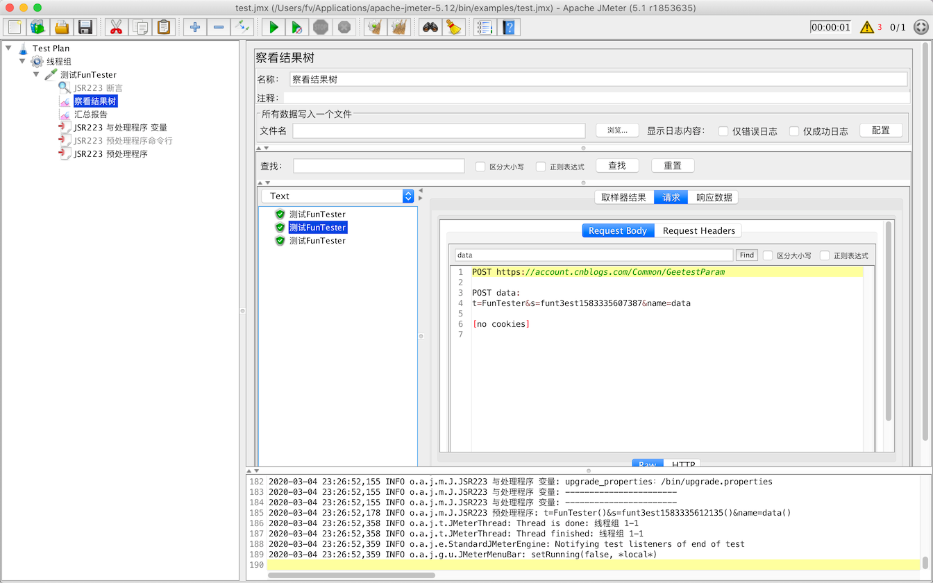 2020-03-04 23:24:23,456 INFO o.a.j.m.J.JSR223 预处理程序: t=FunTester()&s=funt3est1583335463413()&name=data()