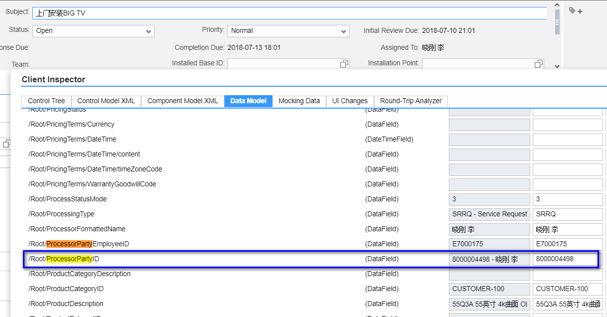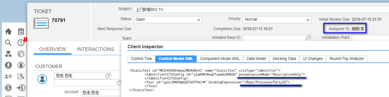 这个Assigned To字段UI上显示的是party name, 然而绑定的字段是party ID。