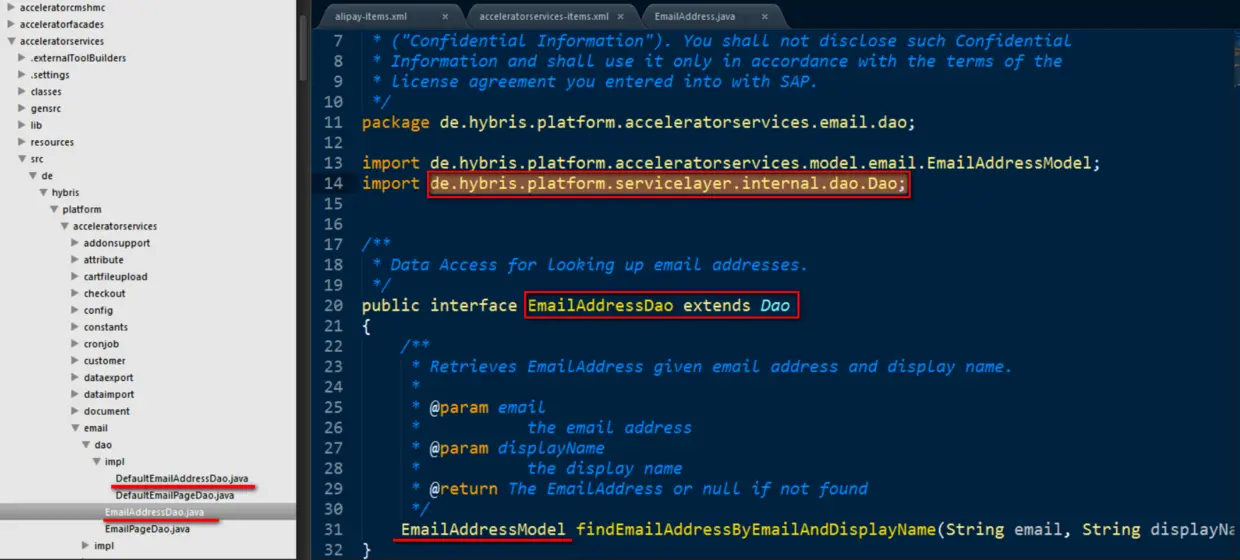 Hybris里所有DAO实现的super class是hybris标准的框架DAO, 定义在如下namespace里. 讨论都是一个DAO作为interface定义操作,