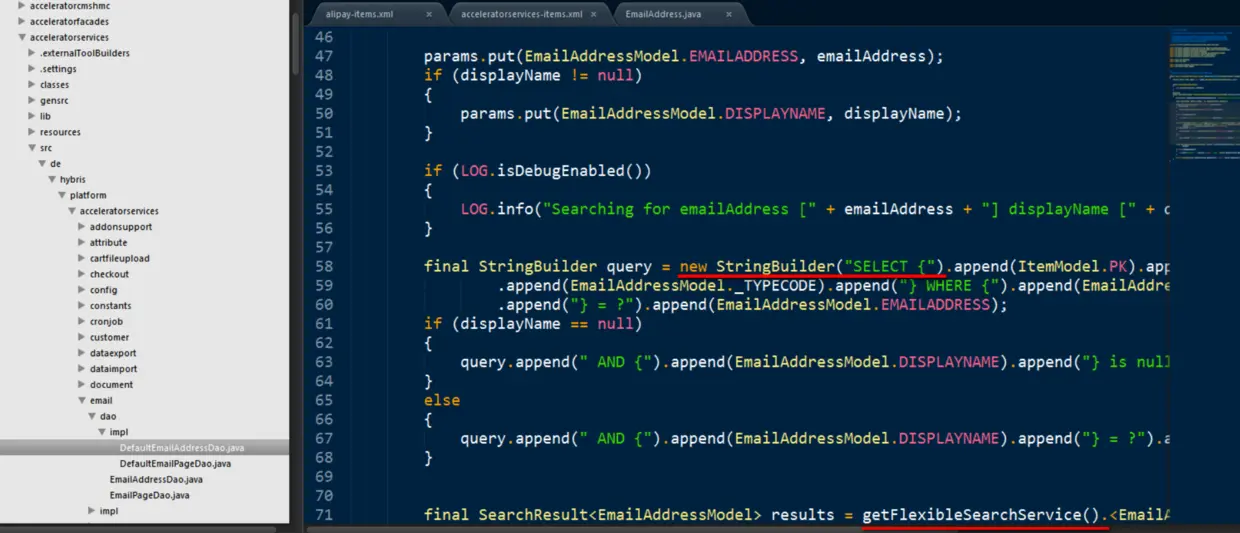 另一个default开头的DAO提供default实现: 拼SQL然后call flexibile search.