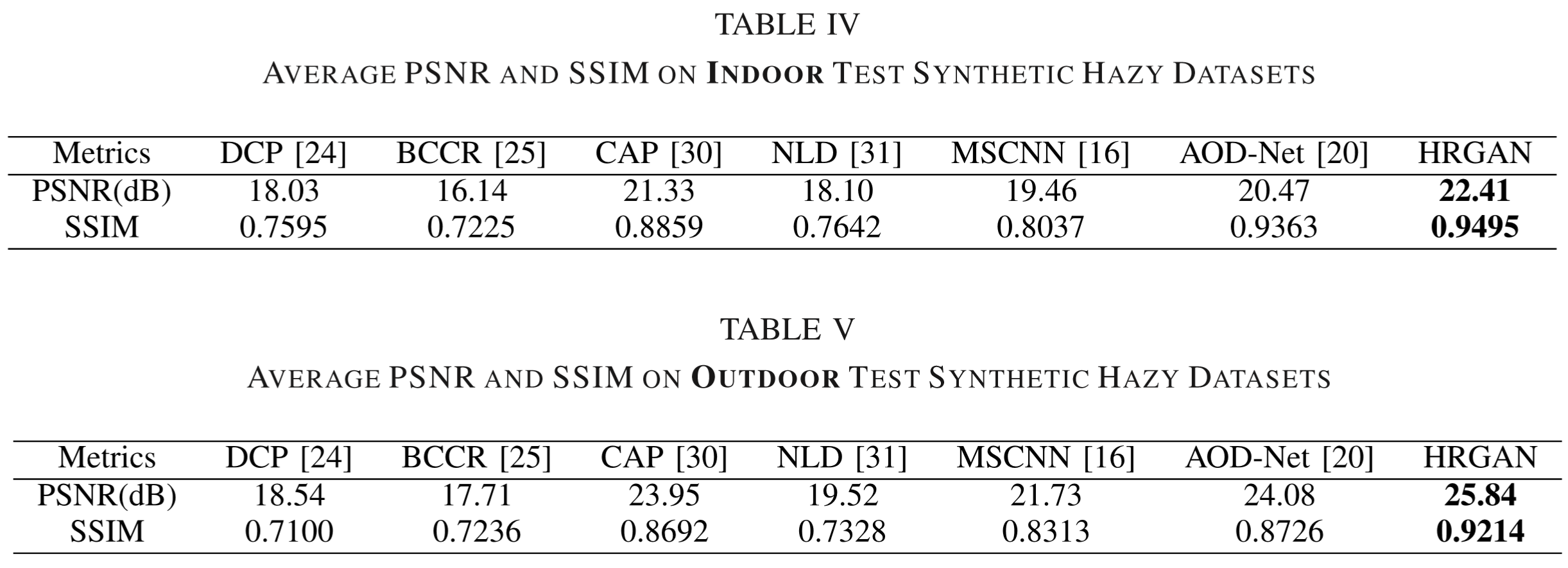 合成有雾指标对比