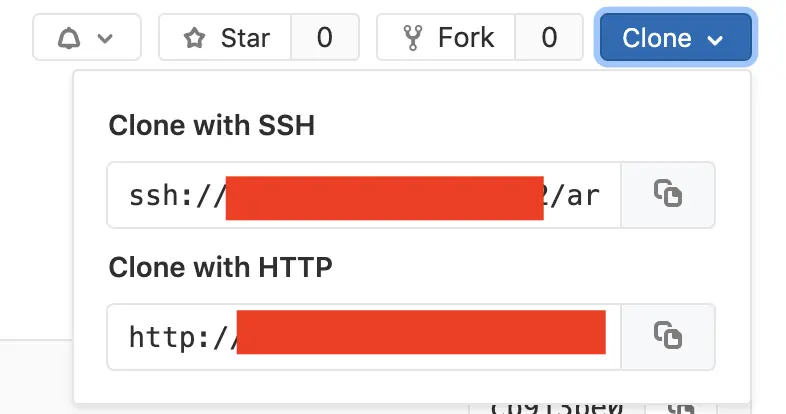 在代码项目中,复制下面 SSH 或者 HTTP 的地址,例如 ssh://localhost/user/project1 ,在本地命令行中输入如下内容。