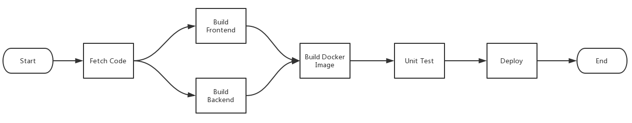 例如上图这个持续集成流水线,当持续集成工具检测到源代码有变更的时候,会启动这个流水线: