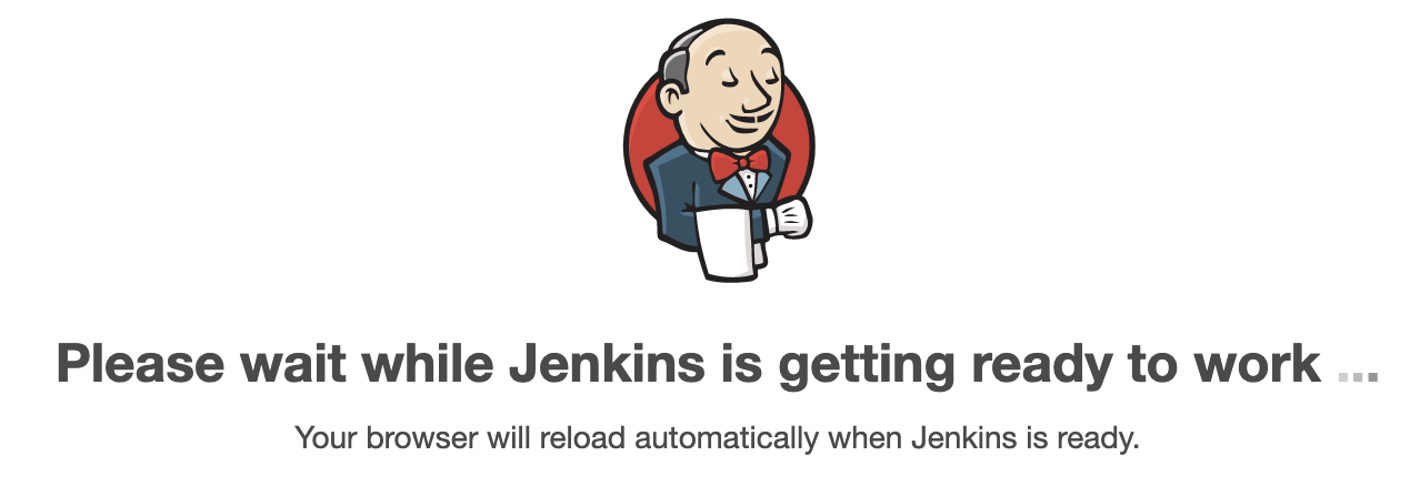 以上命令已经有注释了,读者可以根据需要更改其中的一些配置,例如映射端口,8080 可以是 9090、80 等等。执行上述命令后,Jenkins 需要一定初始化时间,等待片刻后在浏览器中输入 http://<宿主机ip>:8080,就可以看到 Jenkins 的初始界面(如下图),这是 Jenkins 在加载必要数据和第三方库,大概需要几分钟。
