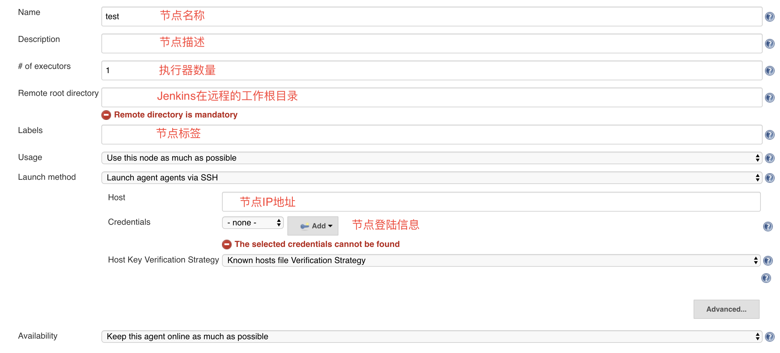 这里简单介绍一下 Jenkins 的原理,Jenkins 构建项目是通过 Jenkins Executor 这个 jar 包来实现构建和部署的。Jenkins 服务的本地机器叫做 主机(master) ,如果告诉主机其他机器的 IP 地址和登陆信息,Jenkins 就可以通过 SSH 的方式在该机器上将 Jenkins Executor 拷贝过去并运行,再而与其交互通信,通过 Jenkins Executor 完成远程构建工作。