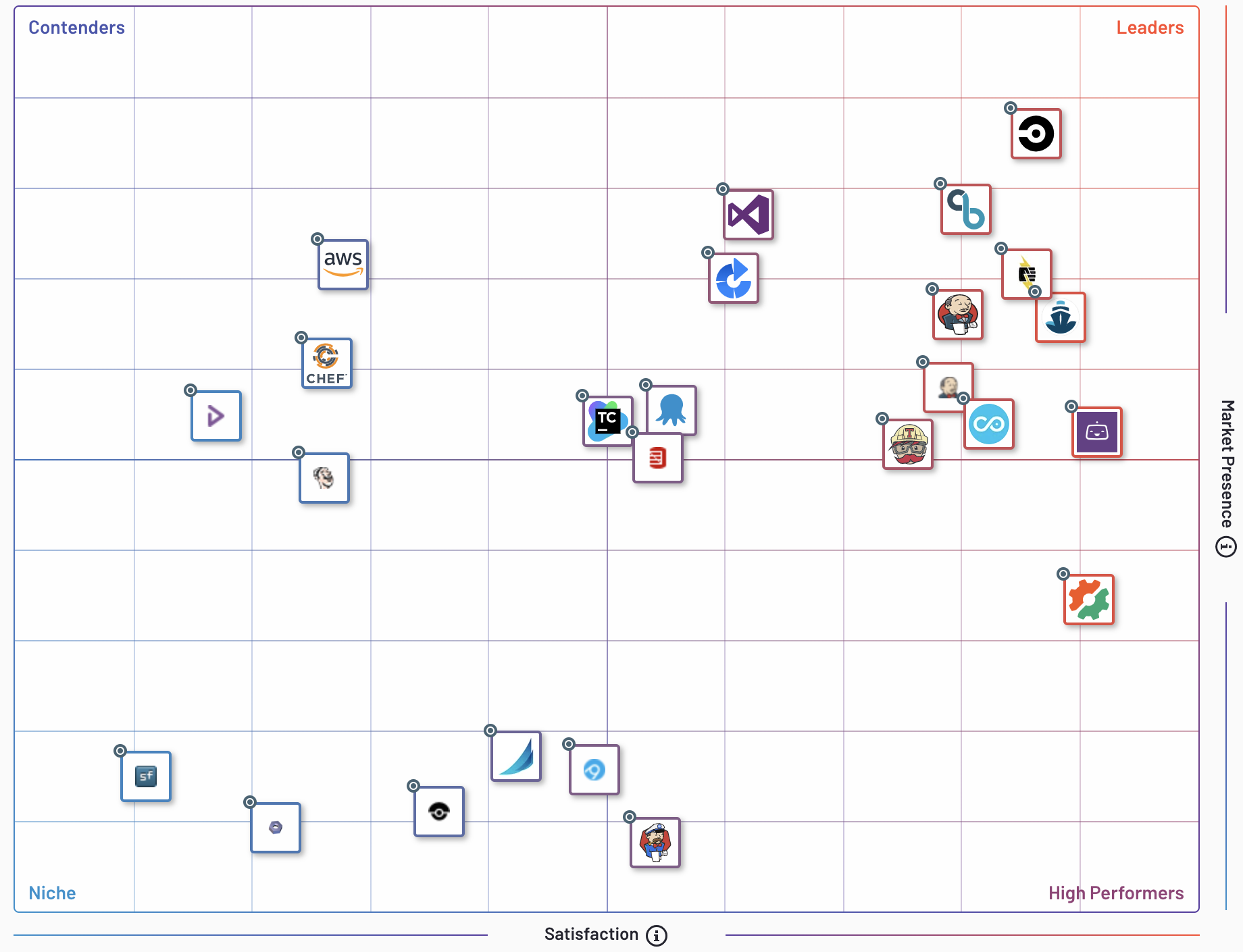 下图是各个 CI/CD 工具的市场竞争矩阵图。