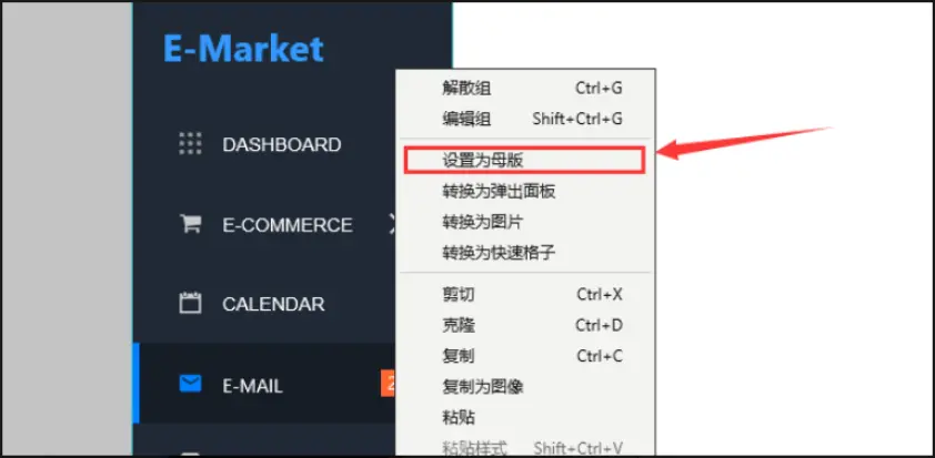 ② 右键选中组件,在弹出菜单中选择“设置为母版”即可添加一个母版组件;